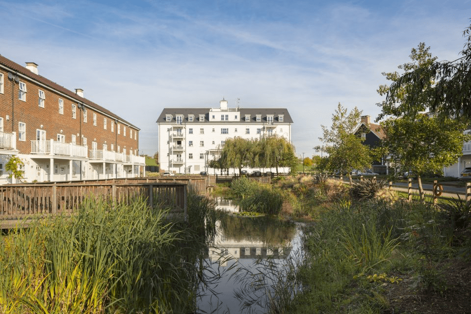 Completed in 2011, The Hamptons is a 645 home mixed development set around 30-acres of parklands and communal green space set in Worcester Park on the Surrey/London border.